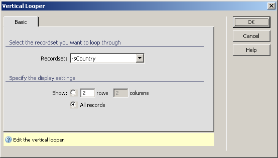 You can use the Vertical Looper server behavior (by double-clicking on it) to alter the Looper list properties at a later time.