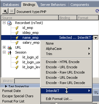 This section describes the formatting facilities offered by MX Kollection 3 when working with dynamic data from the Bindings tab (recordsets or variables):