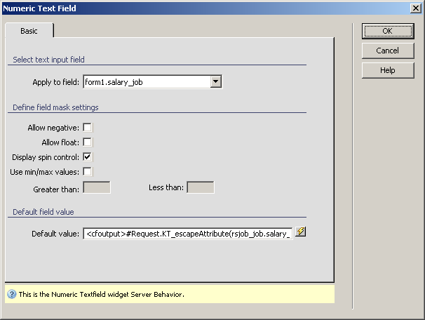 Note: If you use this server behavior on the ColdFusion server