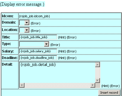 the idloc_job field. Set it as menu, and use a recordset based on the