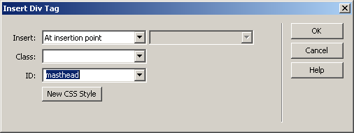 Add three <div> tags from the Layout tab of the Insert bar. In the configuration interface select their ID's: