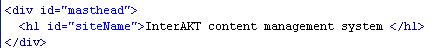 content management system"). To better style it, select the H1 format, and in code view add the id="siteName"