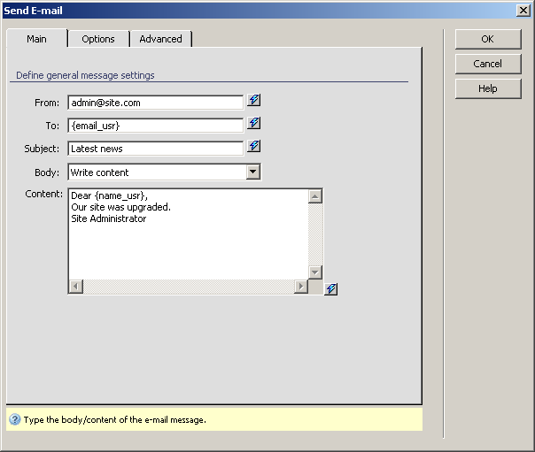or HTML e-mails - you can select to send either text or HTML e-mails,