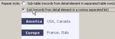 records from the detail table can be displayed either in a comma separated