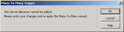 The Many-To-Many Wizard can be applied in a page where an Insert, Update or NeXTensio form already exists. The wizard will generate the Many To Many Trigger and a Nested Repeat region:
