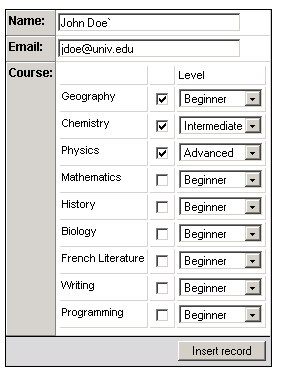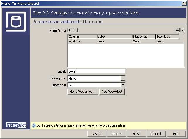 The Many-to-Many wizard in MX Kollection 3 also allows you to have other fields in the many-to-many table as well. Considering the example above, this wizard will match the case where your linking table also has to store, say the level for each student for a particular class. This way you can differentiate between beginners, advanced or graduates.