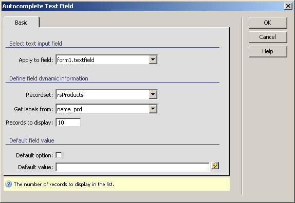 text field. You can also select it from one of the available recordsets