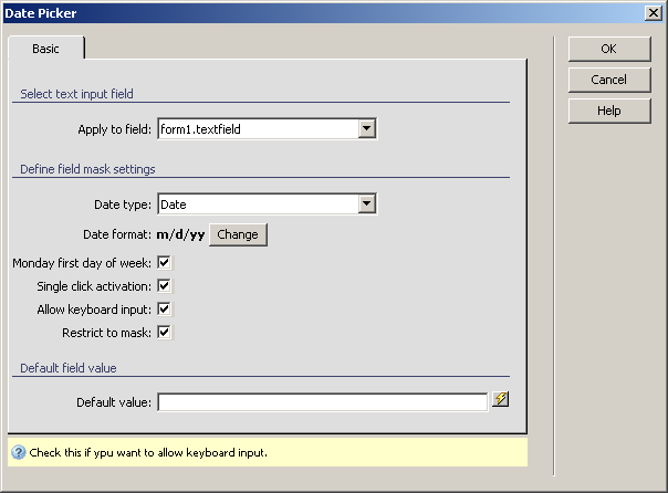 allows the web developers to include a date picker text field in their