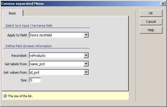 allows the web developers to include a comma-separated menu in their site