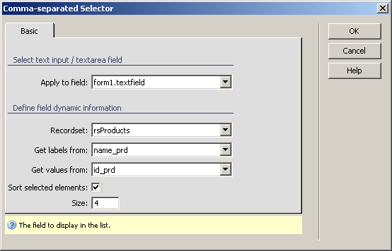 to field drop-down menu select the text field on which to