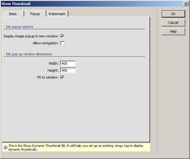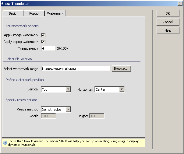Tick the Apply popup Watermark checkbox to enable adding a watermark over the thumbnail that is displayed in a popup window. This checkbox is enabled only if you have decided to display thumbnails in a pop-up.