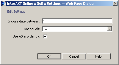 In the Not equals drop-down menu select the symbol that your DBMS is using for the "not equals" comparison. The query builder default is "!=", but you can change this depending on your configuration to "<>".