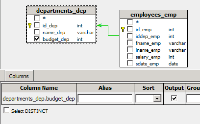 The checkboxes in the database diagram can be used to add or remove