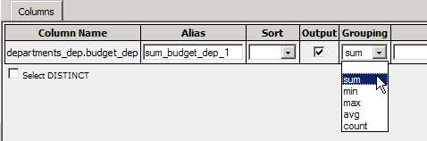 raw data, but rather some specific information from the table. The Grouping drop-down menu lets you get sums, minimum