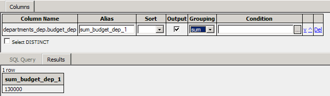 Here you can see the query results when a sum grouping is applied to