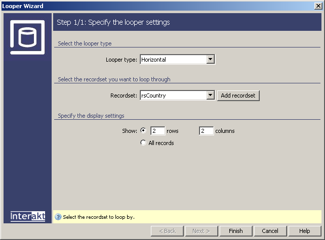 menu select the recordset you've already created and that contains the