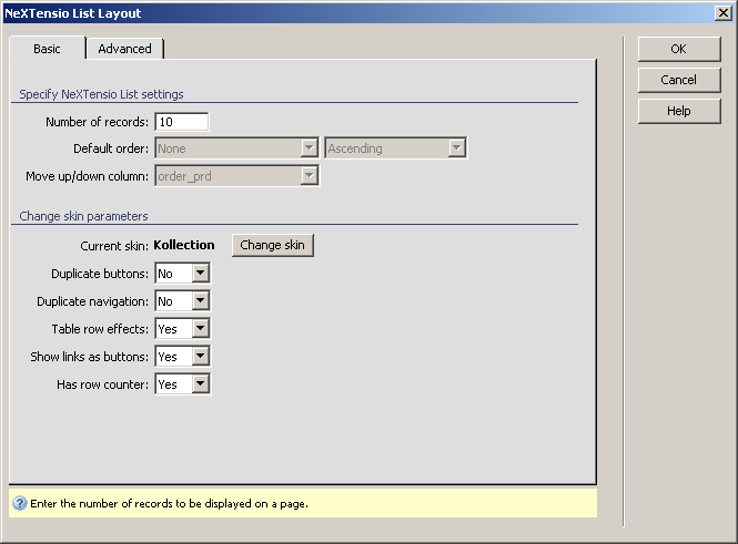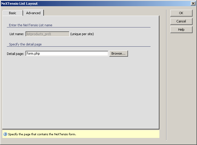 read-only drop-down menu you can view what table column was selected previously (in the Create NeXTensio List Wizard) for the records