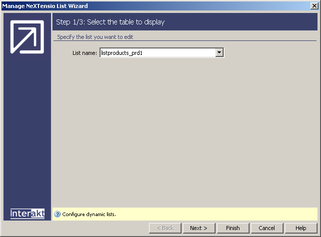 Note: Since there can only be one NeXTensio list in the page, the wizard automatically opens with the second step. If you want to know the list name, you can hit the < Back button in that second step and check out the list name in the first step.