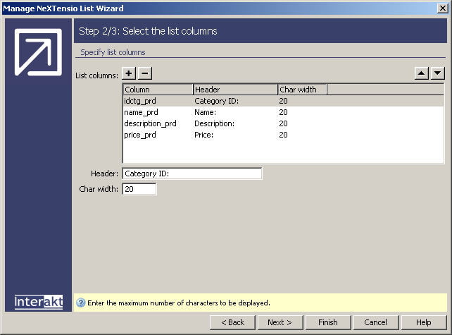 In the Char width text box you can modify the maximum number of characters accepted by the current list column.
