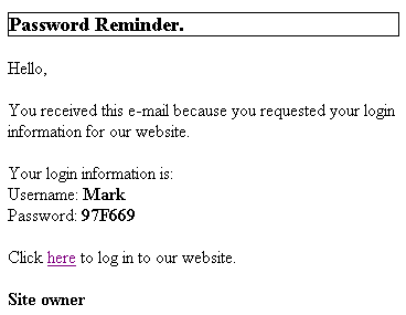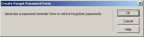 The Create Forgot Password Form server behavior is for users who no longer remember their password. The page will take a user's email address, verify that it exists in the database, and send the user their current password.
