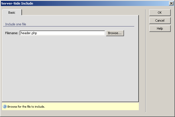 The Server-Side Include server behavior allows the site developer to include a file in the current Dreamweaver page. The file to be included can be modified later, the new modifications being seen in the page where this server behavior is applied.