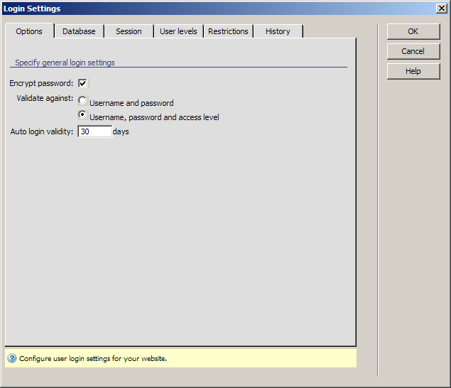 Tip: The Auto login cookie lasts 30 days from the last visit