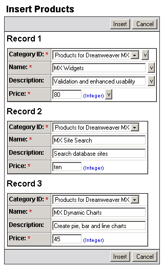 (last step), the multiple insert form can look like in the following images: