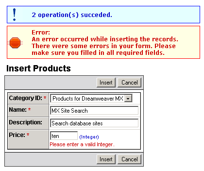 price and the form validation is applied: