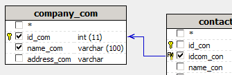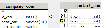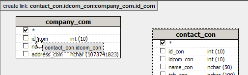 Diagram. Create a table relation by dragging the idcom_com