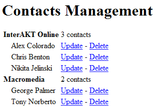 This concludes the Contact Management Application tutorial. In the next tutorial, Contact Form, you will build a form for sending e-mail messages to one or several contacts from the database.