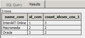 contacts associated with a company. You can verify the result in the SQL/Results Preview Panel: