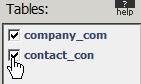 panel containing a list of the tables in the current database. Select