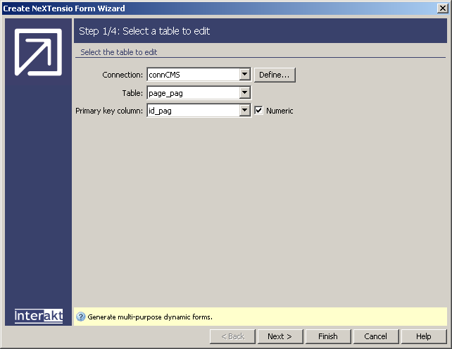 the wizard's dialog box, and add all elements into the page. In Dreamweaver,