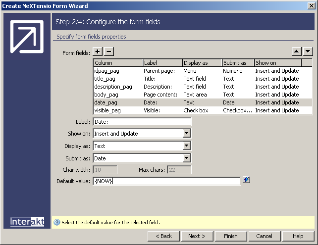 In the second step of the wizard, you have to define the columns that