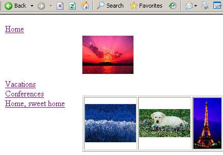 The current organization of the gallery files does not allow simple navigation through all of the albums and pictures. That is why in this tutorial topic you will enhance the gallery, by putting all the elements that make up the gallery in a single page. You will reuse the pages created so far, using MX Includes, which allows placing existing files within a single page in a static or dynamic way.