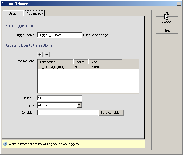 panel, click the Custom Trigger you've just