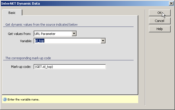 Parameter option and enter id_top in the Variable