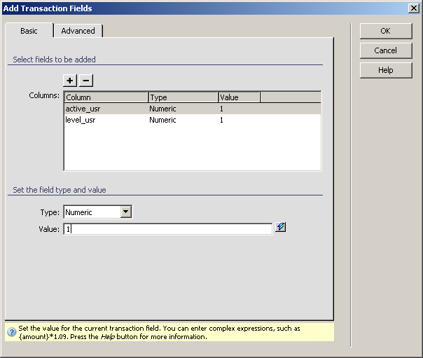When you click the OK button, the two fields will be taken into account when the transaction executes, and they cannot be altered.