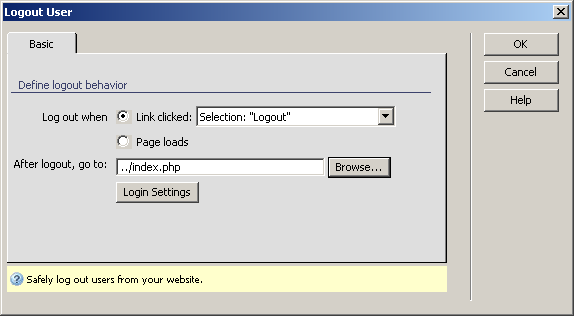 Note: If you use this server behavior on the ColdFusion server model, a file named Application.cfm will be automatically generated in the site root folder. Do not delete this file, as it contains settings related to session variables used by the server behavior and the current application. If you remove this file or modify it, application pages that use sessions will not function properly.