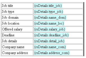from the recordsets created earlier (rsDetails for the job ID, and rsResume