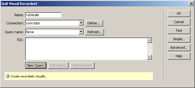 To start it, click on the QuB3 button in the recordset dialog box. The