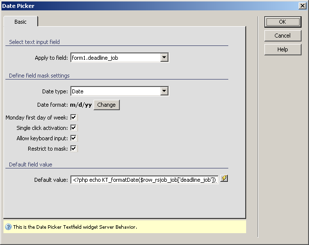- Select the deadline text-box in Dreamweaver's editable