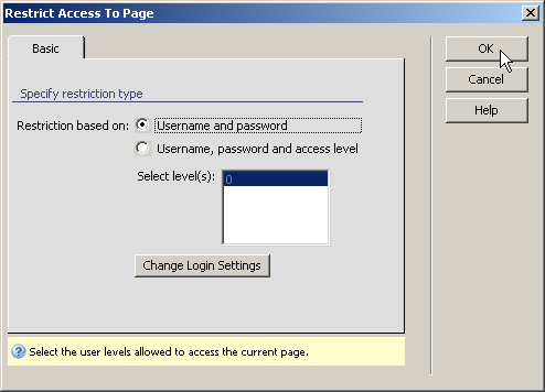 Restrict access to the pages