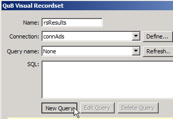 The new SQL code should now appear in the QuB Visual Recordset window. Click OK.