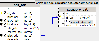 between them by dragging the foreign keys from the ads_ads