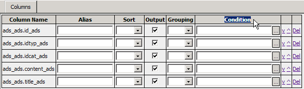 button in the Condition column. Fill in