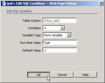 will need to have a condition associated with it. Starting with the idtyp_ads field, click the ...