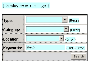In the second step of the wizard, you can add fields that will be displayed in the page. This is actually a much easier way of adding form elements, as it allows you to manage them in a central place. Also, you can define a SQL query to use them in the wizard's last step. Add the following fields: Type, Category, Location and Keywords. For the first three, set them to be displayed as menus, and configure the menus to retrieve data from the respective tables. For an example of how to do that, see the Post Ad section.