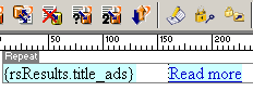 Place a dynamic table from the Application tab of the Insert panel. Configure it to display all records of the rsResults recordset. Once you've added the table, it will display all recordset columns. Except for the title_ads column, delete the rest. Also remove the header row for the title column.