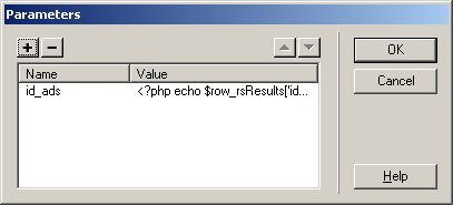 icon, and choosing the id_ads recordset field:
